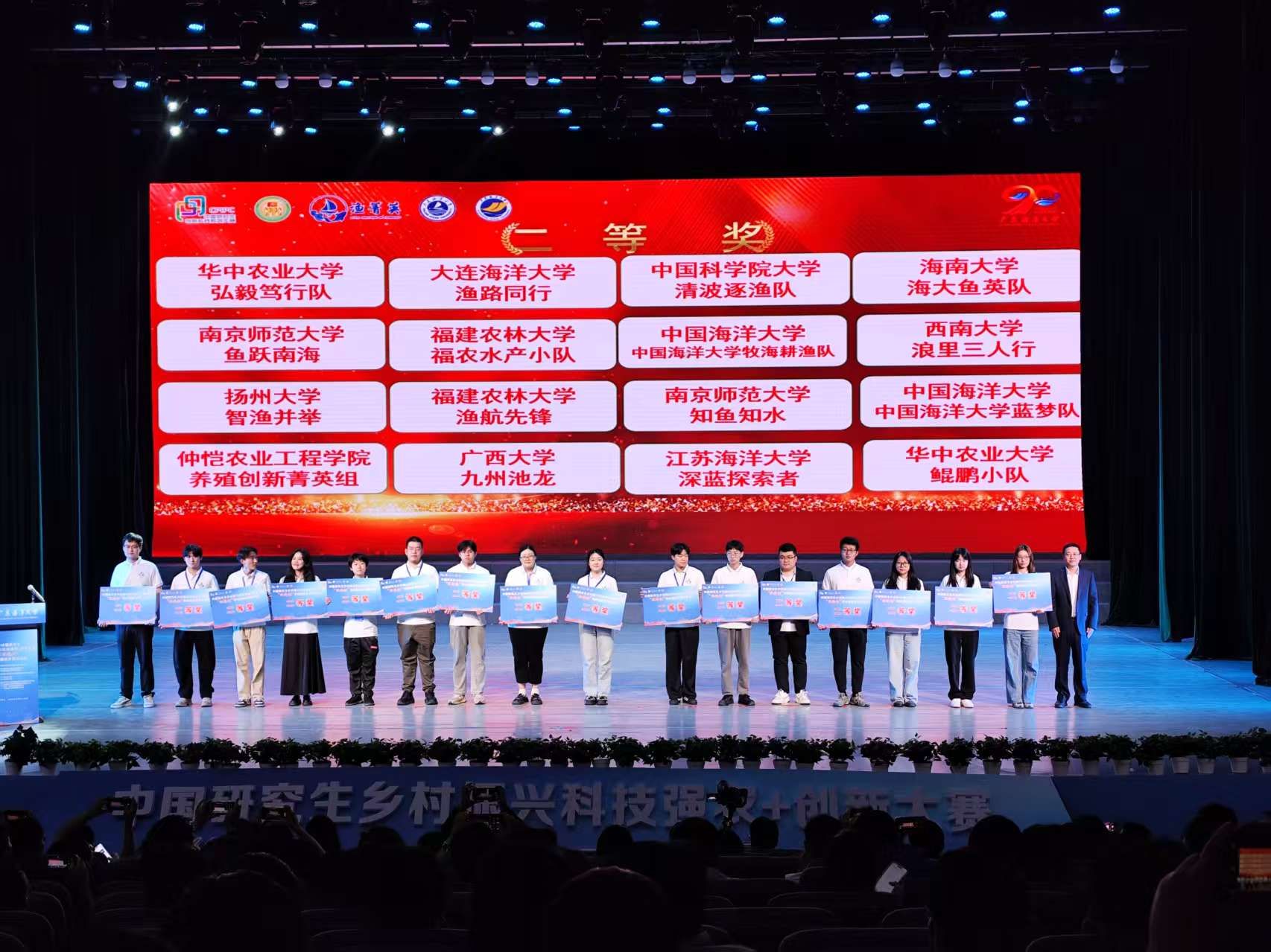 10月24-26日,中国研究生乡村振兴科技强农+创新大赛“旺海杯”第四届渔菁英挑战赛决赛在广东海洋大学举行。我校水产学院“渔英飞越”团队获得一等奖,“弘毅笃行”团队和“鲲鹏小队”团队获得二等奖。