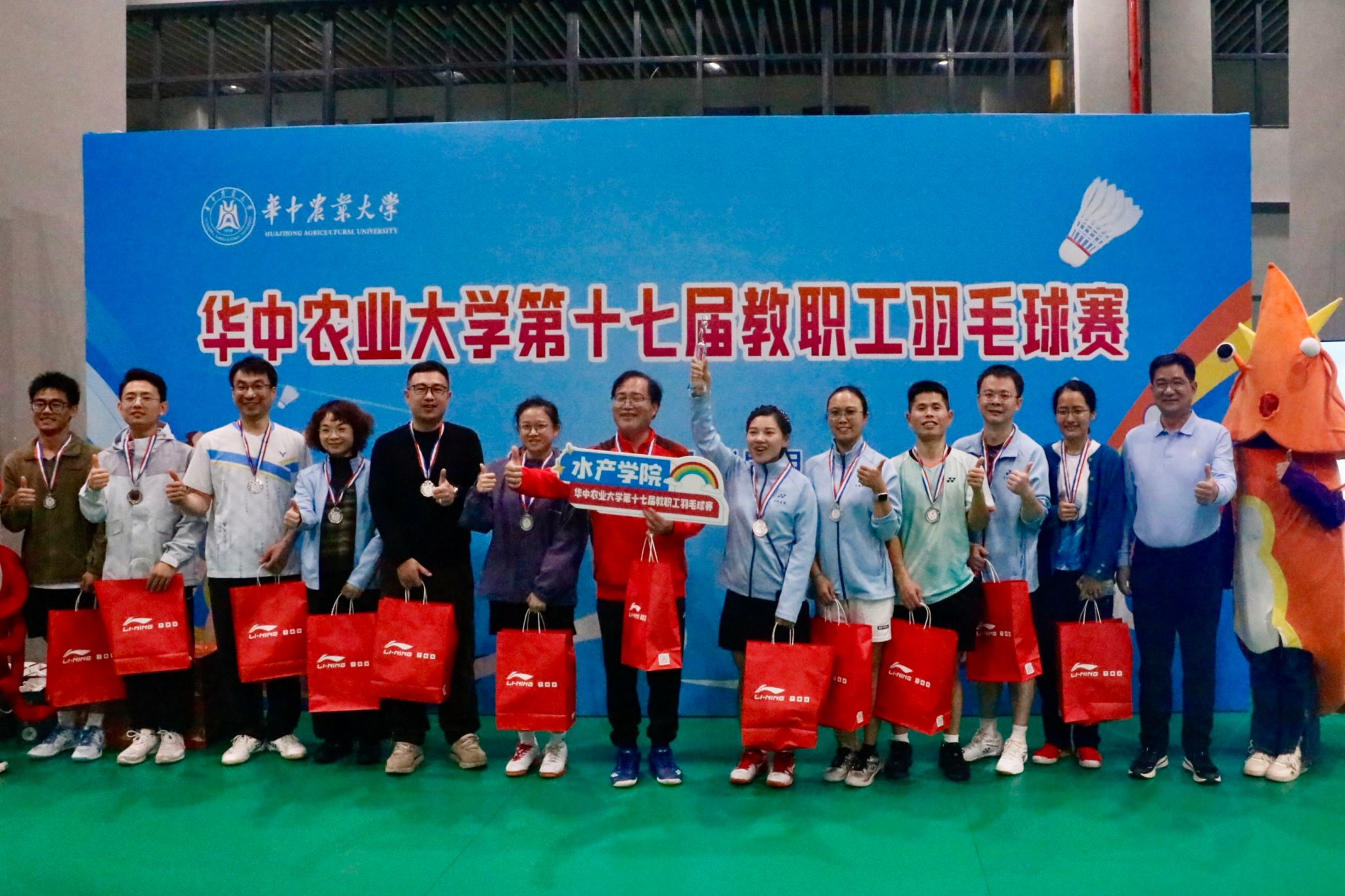 11月2日上午,由校工会、体育部主办,我院和华羽俱乐部承办的华中农业大学第十七届教职工羽毛球赛在东体育馆羽毛球场圆满落下帷幕,本次比赛共19支代表队、322名教职工参赛。我院代表队斩获亚军,陶江明荣获“最佳男运动员”。