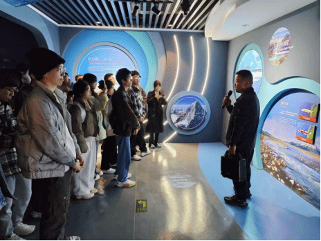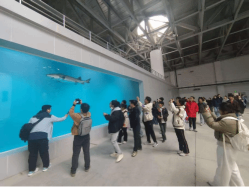 11月22日下午,华农师生一行来到三峡集团。中华鲟研究所高级工程师李洋等人对华中农业大学师生进行了热情接待。在中华鲟研究所展览馆,李洋向同学们详细介绍了长江各河段鱼类种群分布、长江流域生态恢复进展、中华鲟人工繁育技术等内容。展览馆内各式各样的长江特色鱼类深深吸引了同学们的注意。