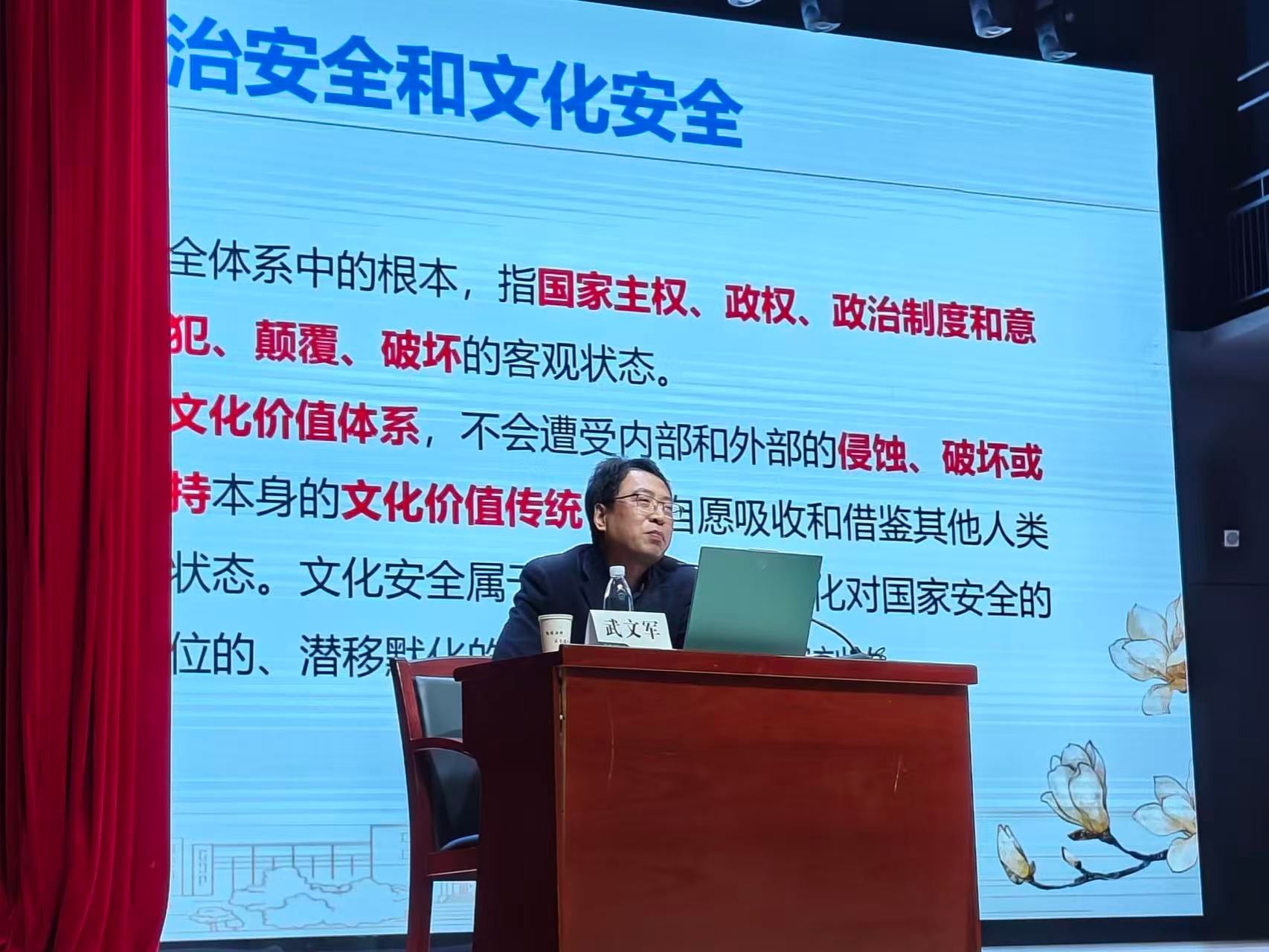 为进一步强化青年学生思想政治教育,提升网络安全意识和文化辨识能力,2025年10月19日,我院举办了以“警惕思想殖民,守护文化自信”为主题的专题教育讲座。活动特别邀请到马克思主义学院副教授武文军老师作专题报告,对新华社发布的《思想殖民——美国认知战的手段、根源及国际危害》报告进行深入解读,并结合现实案例分析国家政治与文化安全的重要意义。