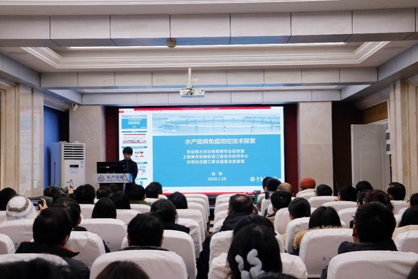 近日,我院2026年第2期(总434期)“水产讲坛”在水产楼A105报告厅举行。讲座特邀华东理工大学刘琴教授,作题为“深远海适养鱼种的核酸疫苗设计与应用”的专题学术报告。刘琴教授围绕研究团队与平台、研究基础与成效以及技术布局与进展三个方面展开系统介绍,重点阐述了核酸疫苗在深远海水产养殖病害防控中的前沿设计与应用,为师生拓展了水产疫病绿色防控的新视野。本次讲座由水产学院副院长高泽霞教授主持。